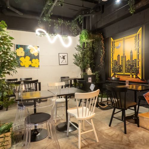 桌子可容納 2 至 4 人。非常適合與家人和朋友一起用餐,或與同事一起喝酒聚會。您可以在時尚、熱鬧的氛圍中度過愉快的時光。店內裝潢很流行,很上鏡!
